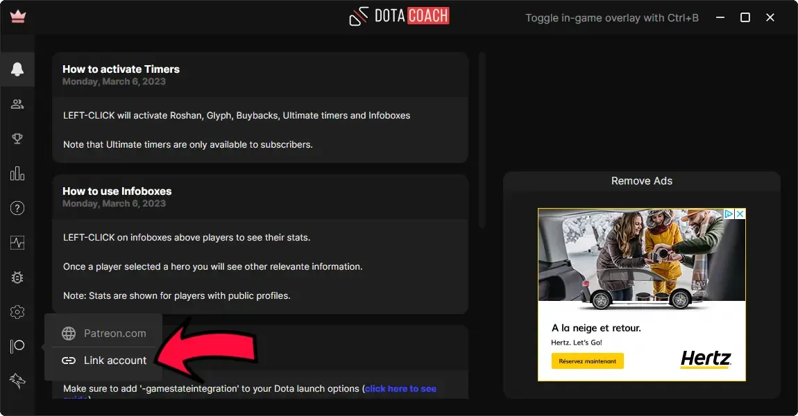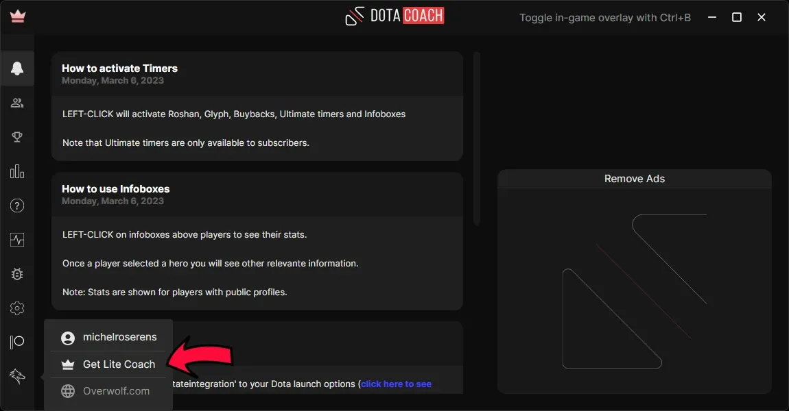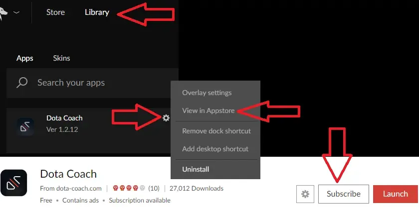 Après avoir installé Dota Coach, vous pouvez souscrire à nos services.