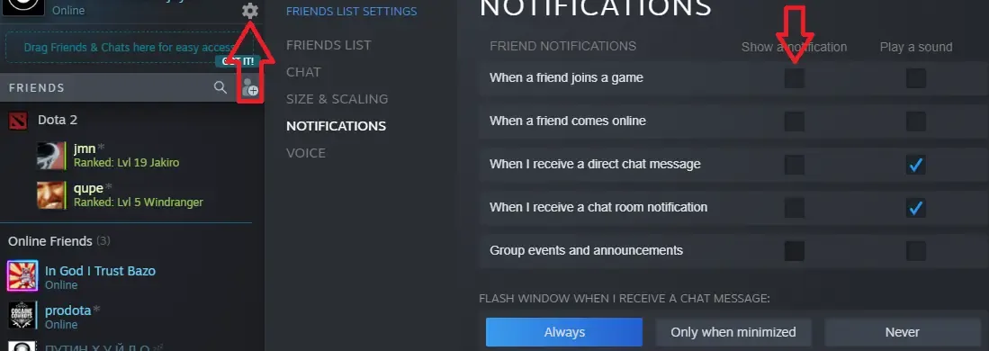 Les notifications Steam peuvent aussi impacter les FPS. Tu peux les désactiver ici :