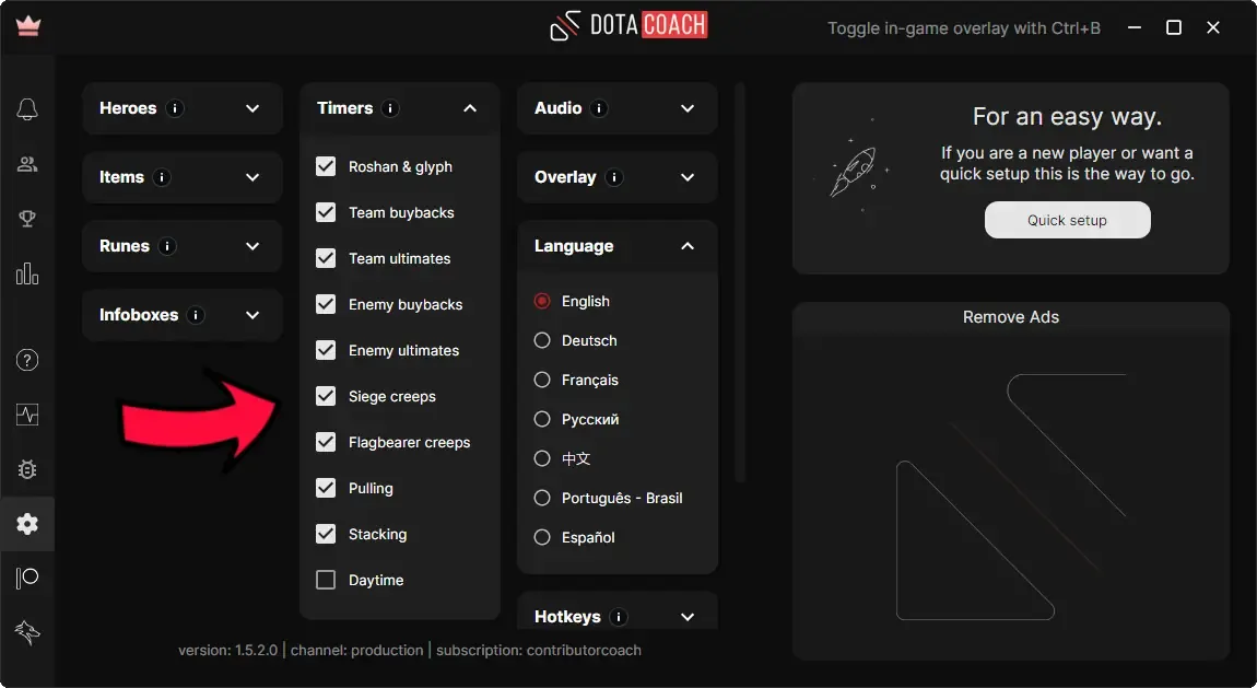 - Si le coordinateur de jeu de Dota 2 n'est pas détecté, Dota Coach ne reçoit aucune donnée sur la partie, ce qui empêche l'affichage des timers.