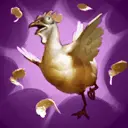 Votre prochaine attaque contre toute unité héroïque ennemie la transformera en poulet pendant 1 secondes.